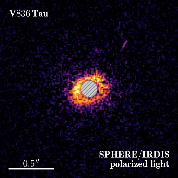 This is a gallery of all the published SPHERE scattered light observations of planet forming disks I have been involved in so far. Almost all of these data sets have been re-processed since the original publication with the IRDAP pipeline developed by Rob van Holstein. Additionally a light smoothing has been applied. Note that images that say “polarized light” (almost all of them), are NOT sensitive to planet thermal emission and will just show scattered light from the disk (different processing is needed to see possible embedded planets). Click on any image to go to the associated paper. Feel free to use any of these images in your talks or classes if they seem useful (although a shout-out where you got them from would be appreciated ;)!